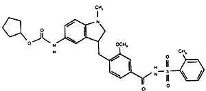 【分子式成分】4-(5-环戊基氧代碳酰胺基-1-甲基吲哚-3-撑甲基)-3-甲氧基-邻位甲苯磺酰基-苯甲酰胺