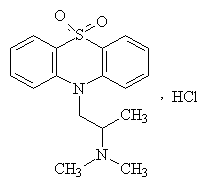 【分子式成分】化学名称为10-(2-二甲氨基-异丙基)吩噻嗪-5,5-二氧化物的盐酸盐。分子式:C17H20N2O2S·HCL。分子量:352.88