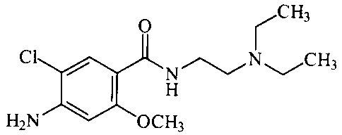 【分子式成分】化学名:N-[(2-二乙氨基)乙基]-4-氨基-2-甲氧基-5-氯-苯甲酰胺。分子式:C14H22ClN3O2。分子量:299.80。
