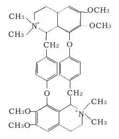 由千金藤属植物地不容(StePhania epigegae)分离而得的轮环藤宁,经季胺化所得的二甲基溴化物。为粉红色粉末,熔点260℃,含溴19.56%~19.74%,易溶于水。