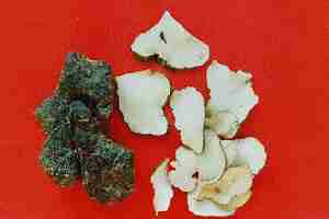 | 为多孔菌科真菌猪苓的菌核。寄生于桦树、枫树、柞树等腐枯根上。主产于陕西、河北、云南等地。春秋二季采挖,去泥沙、晒干。切片入药,生用。 【性味归经】甘、淡,平。归肾、膀胱经。 【功效】利水渗湿。 【应用】用于小便不利,水肿,泄泻淋浊等。本品甘淡渗泄,利水作用较茯苓强,凡是水湿滞留者均可选用。若脾虚水肿,小便不利,常与茯苓、泽泻白术同用,如四苓散。若水湿泄泻,配苍术、厚朴、茯苓等,如胃苓汤。阴虚有热小便不利,淋浊等证,又可与泽泻、滑石、阿胶等配伍,如猪苓汤。 【用法用量】煎服,5~10g。 【使用注意】无水湿者忌用。 《本经》