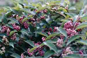 马鞭草科杜虹花,落叶灌木,高1-3m,小枝被黄褐色星状抟,叶对生;卵状椭圆形或椭圆形,叶下面及叶柄皆密被黄褐色昨状毛。紫红色管状小花开于叶腋,聚伞花序被黄褐色星状毛;花序梗约1.5-2.5cm;萼短钟形,4裂,裂片钝三角形;花冠短筒状,4裂,紫色;雄蕊4,外露甚长;雌蕊1,子房4室,花柱细长,高于雄蕊,柱头单一。果实小球形,肉质,熟时紫红色。花,呆期在夏、秋间。主产我国南方各省,颁于山地、林间。以叶入药,称为紫珠。7-8月采收。