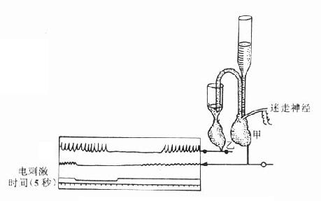图5-3 证明迷走神经兴奋时释放递质的双蛙心实验
