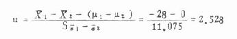 (3)求两均数的相差数X1-X2、两均数相差的标准误Sχ1-χ2及u值。此外,计算Sχ1-χ2的公式为