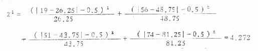 4.求χ2值 将表3.6里的数值代入式(3.5)得,