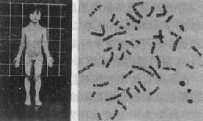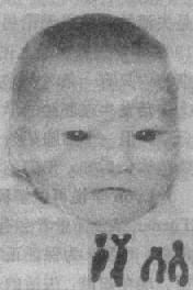 1.先天愚型 先天愚型是最重要的染色体疾病。英国医生Langdon Down 首先描述,故称为 Down综合征(Down sydrome)。1959年,法国细胞遗传学家Lejeune证实此病的病因是多了一个小的G组染色体(后来确定为21号),故此病又称为21三体综合征。 Lejeune的发现开创了医学遗传学的一个重要分支――临床细胞遗传学。