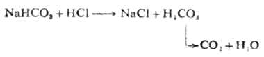继续用HCL溶液滴定时,发生第二步滴定反应,NaHCO3全部变成H2CO3而达到第二化学计量点: