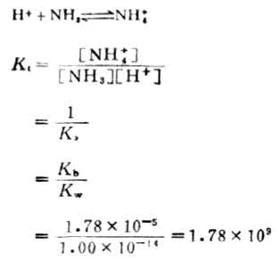 在这类滴定反应中,由于强碱完全离解而弱酸(HA)部分离解,故滴定反应及其反应常数Kt可表述为: