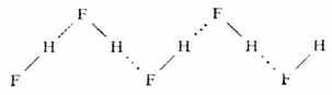 氢键常在同类分子或不同类分子之间形成,叫做分子间氢键,如氟化氢、氨水: