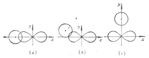 图4-9 氢原子的1s电子云与氧原子的3Pχ电子云的三种重叠情况
