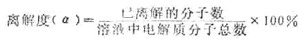 离解度是指溶液中已经离解的电解质的分子数占电解质总分子数(已离解的和未离解的)的百分数。通常用α表示。