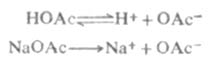 例如,在醋酸溶液中加入一些醋酸钠,由于醋酸钠是强电解质,在水溶液中完全离解Na+OAc-,这样溶液中[OAc-]增大,使