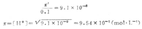 根据式(2-3)和式(2-4),可以计算一定浓度的弱酸或弱碱的[H+]或[OH-]。