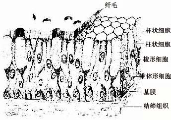 图2-4 假复层纤毛柱状上皮模式图