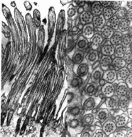 左图 纤毛纵切, 右图 纤毛横切