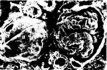 图1-17 大鼠肾冷冻割断扫描电镜示肾小体