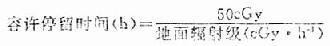 在核爆炸一天以后进入地面辐射级>0.5Gy·h-1的沾染区,其容许停留时间(h)可用下式进行粗略估算: