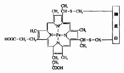 图6-2 细胞色素C的辅基与酶蛋白的联接方式