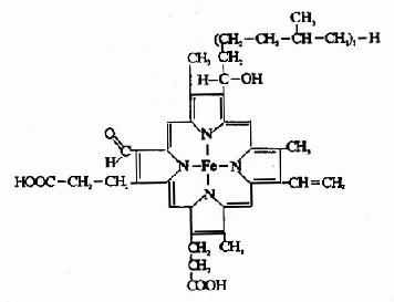 铁卟啉辅基所含Fe2+可有Fe2+←→Fe3++e的互变,因此起到传递电子的作用。铁原子可以和酶蛋白及卟啉环形成6个配位键。细胞色素aa3和P450辅基中的铁原子只形成5个配位键,还能与氧再形成一个配位键,将电子直接传递给氧,也可与CO、氰化物、H2S或叠氮化合物形成一个配位键。细胞色素aa3与氰化物结合就阻断了整个呼吸链的电子传递,引起氰化物中毒。