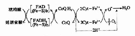 (Fe-S):铁硫中心:b:琥珀酸脱氢酶复合体的细胞色素