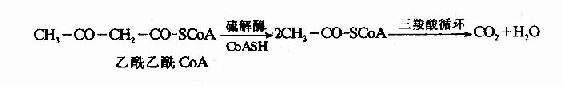 经上述两种酶催化生成的乙酰乙酰CoA在硫解酶作用下,分解成两分子乙酰CoA,乙酰CoA主要进入三羧酸循环氧化分解。