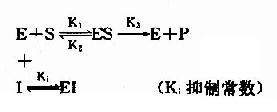抑制剂I和底物S对游离酶E的结合有竞争作用,互相排斥,已结合底物的ES复合体,不能再结合I。同样已结合抑制剂的EI复合体,不能再结合S。