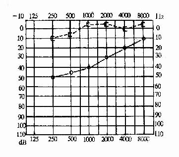 ③混合性聋(图2-27):骨导曲线下降,气导曲线又低于骨导曲线。
