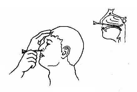 2.滴药法:自外耳道滴入0.25%氯霉素液,连续压耳屏或作吞咽动作,如咽部感到苦味,表明咽鼓通畅;如反复吞咽仍无苦味感觉,说明咽鼓管不通。