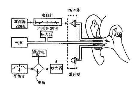 仪器主要由三部分组成:①空气压力系统;②声桥设计部分-声阻抗平衡部分;③声刺激部分(图2-30)。