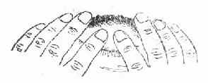 1.指测法:让被检者向下看,检者用两手食指在上睑上部外面交替轻压眼球,检查双眼,以便对比两眼的眼压,眼压高者触之较硬,眼压低者触之柔软,也可和正常的眼压相比较。此法可大概估计眼压的高低,所得结果可记录为正常、较高、很高、稍低或很低(Tn,T1,T2、T-1,T-2)。(图2--19)