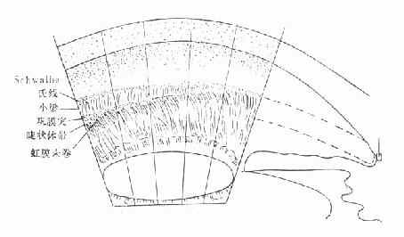 (3)巩膜突,是紧接小梁网之后的一条极窄的黄白色带。也是前壁的终点。