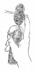 如泪小点过小,应先用泪点扩张器加以扩大。方法是:表面麻醉后,将泪点扩张器垂直放在泪小点,轻轻旋转,使之插入泪小点,再进入泪小管以达到扩张的目的,然后再行泪道冲洗。(图2--10)
