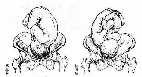分娩时:枕前位旋转45°成枕正前娩出,枕后位须旋转135°成枕正前娩出