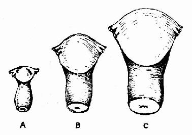 A 婴儿期子宫约1:2 B 青春期子宫约1:1 C成年期子宫约2:1