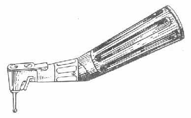 手机种类较多,根据转速和结构可分为高速手机和低速手机,高速手机利用高压空气驱动手机机头内的微型涡轮可涡轮转速达(3-5)×10r/min,车针的切削线速度可达15m/s,而低速手机由于是齿轮转动,转速仅为每分钟数千转。低速手机通常可由速度调节结构调节速度(图3、4)