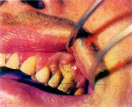 主要采用手术摘除囊肿。一般在口内作切口,翻起粘膜骨膜瓣,去除部位骨壁,暴露囊肿,将囊肿摘除(图3-30)。根据病源牙情况,拔除或作牙髓治疗。