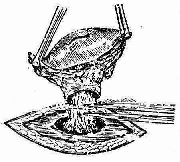 图2-34 缝合腹直肌鞘的边缘 图2-35 成人脐疝囊切除