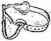 2.对于年老体弱或伴其它严重疾病不宜手术者,可配用疝带。方法是回纳疝内容物后,将疝带一端的软压垫对着疝环顶住,可阻止疝块突出(图2-26)。疝带可以白天佩带,晚间除去。长期使用疝带可使疝囊颈经常受到摩擦变得肥厚坚韧而增高疝嵌顿的发病率,并有促使疝囊与疝内容物粘连的可能。这是使用疝带的缺点。