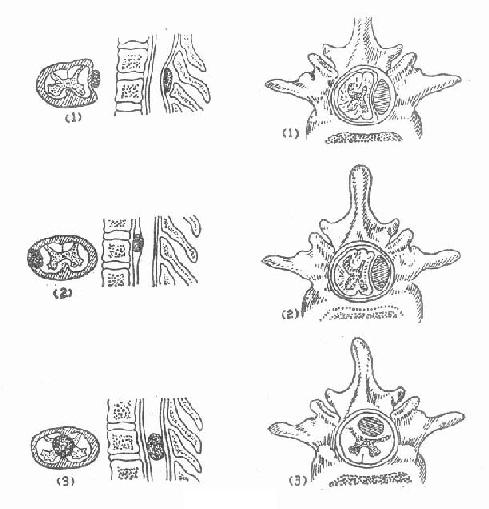 (一)根据肿瘤与脊柱水平部位的关系分为:颈段、胸段、腰段及马尾部肿瘤。