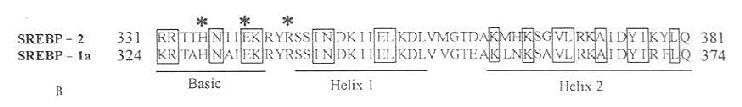 图7-10 A:SREBP-2和SREBP-1a氨基酸序列之间的比较