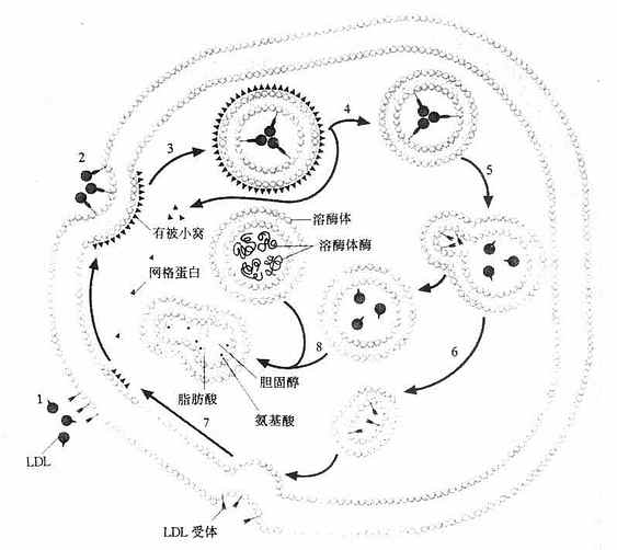 总之,LDL受体主要功能是通过摄取Ch进入细胞内,用于细胞增殖和固醇类激素及胆汁酸盐的合成等。