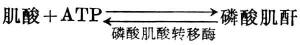 肌酸和肌酸酐的生物合成:肌酸由食物供给,也可以在体内从蛋氨酸、甘氨酸和精氨酸合成。肌酸由血液送至肌肉,被主动吸收,每天转换率为2%。体内大部分肌酸以肌酸和磷酸肌酸的形式储于骨胳肌。在静止的肌肉中则以磷酸肌酸为主,而在疲劳的肌肉中,磷酸肌酸浓度却很低。这是由于磷酸肌酸在磷酸肌酸转移酶的作用下,转变为肌酸和ATP的结果: