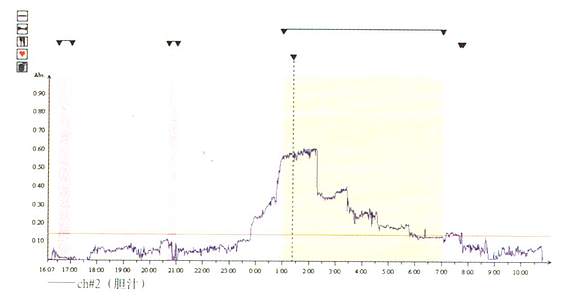 胆汁反流检测记录表(胆汁探头置于LES上方5cm)
