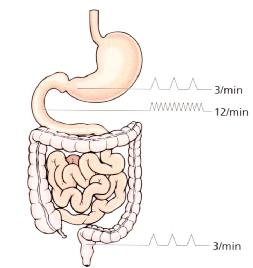 图5.3 胃、十二指肠和直肠的慢波节律。