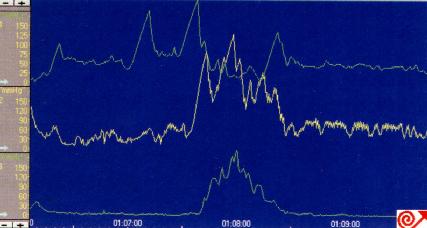 图5.2结肠传输性团块移动,压力曲线显示一大压力波传播经过横结肠。