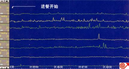 白天RMC 90~300分钟出现一次,夜间或50~90分钟出现一次。每一复合波包含了时相性收缩,其收缩频率为了3~4分钟一次,此也是这一区域的慢波频率。