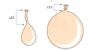 图3.7 用气球来比拟胃:胃过度扩张致LES变短。