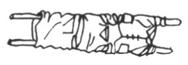 2.方法:第一步,把木棍放在毛毯中央,毯的一边折叠,与另一边重合。第二步,毛毯重合的两边包住另一根木棍。第三步,用穿好线的针把两根木棍边的毯子缝合一条线,然后把包另一根木棍边的毯子两边也缝上,制做即成(图38)