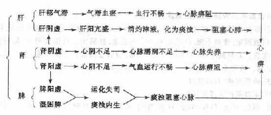 祖国医学认为在正常情况下,脏腑之间具有相互依存,相互制约的平衡协调关系,这种关系一旦遭到破坏,就会发生疾病,与本病相关性最大的是肝、脾、肾三脏的虚损,而肾尤为关键环节。生理情况下,肾水上升以滋心阴,心火下降以壮肾阳,水火相济,阴阳平衡,身体机能正常。若心肾阳虚,不能温煦中土,脾失健运,水浊停滞,浊气归心可发本病;若水浊停滞不行,久而化热,消灼以成痰浊,阻于脉道经络,致气血运行不畅,心脉痹阻,不通则痛,而发心痹。若心肾阴虚,使肝木失养,则相火偏亢,灼烁津液而成痰浊,阻塞心脉,亦发心痹。