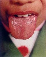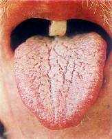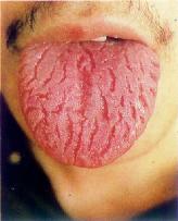 ④裂纹:舌体上有多种纵行或横行的裂沟或皱纹,多由于粘膜萎缩而形成。裂纹舌可见于少数正常人。舌质红绛而有裂纹者多属热盛;舌质淡而有裂纹者多属气阴不足。